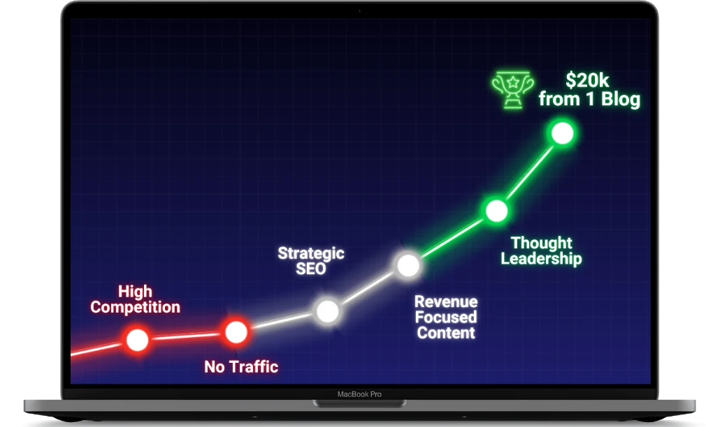 - Results: Ranked on page 1 for multiple keywords, multiple qualified leads generated, $20K in revenue from 1 blog alone